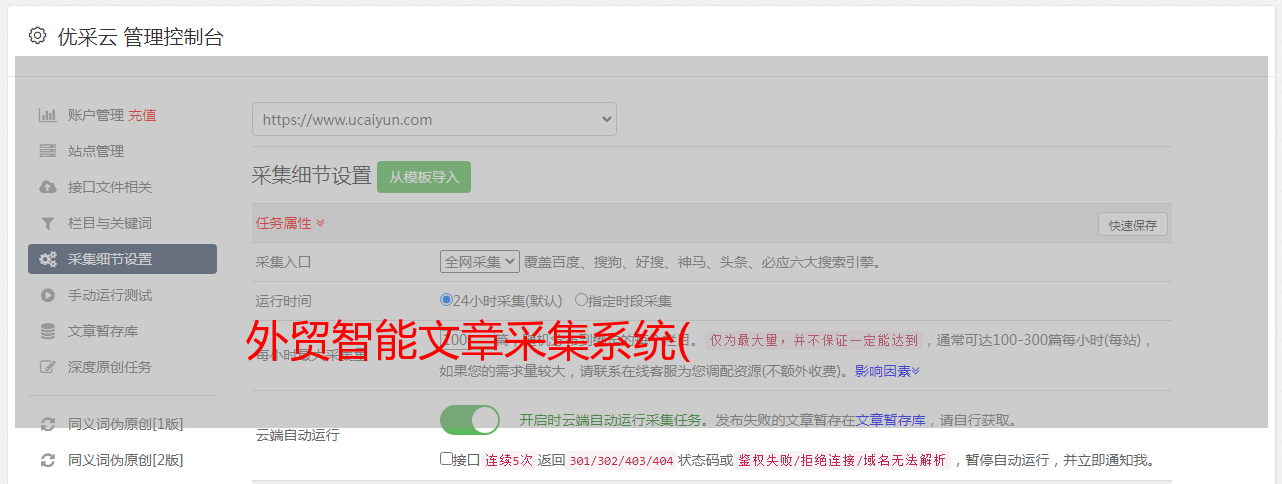 优采云 发布时间: 2021-10-06 19:32外贸智能文章采集系统(