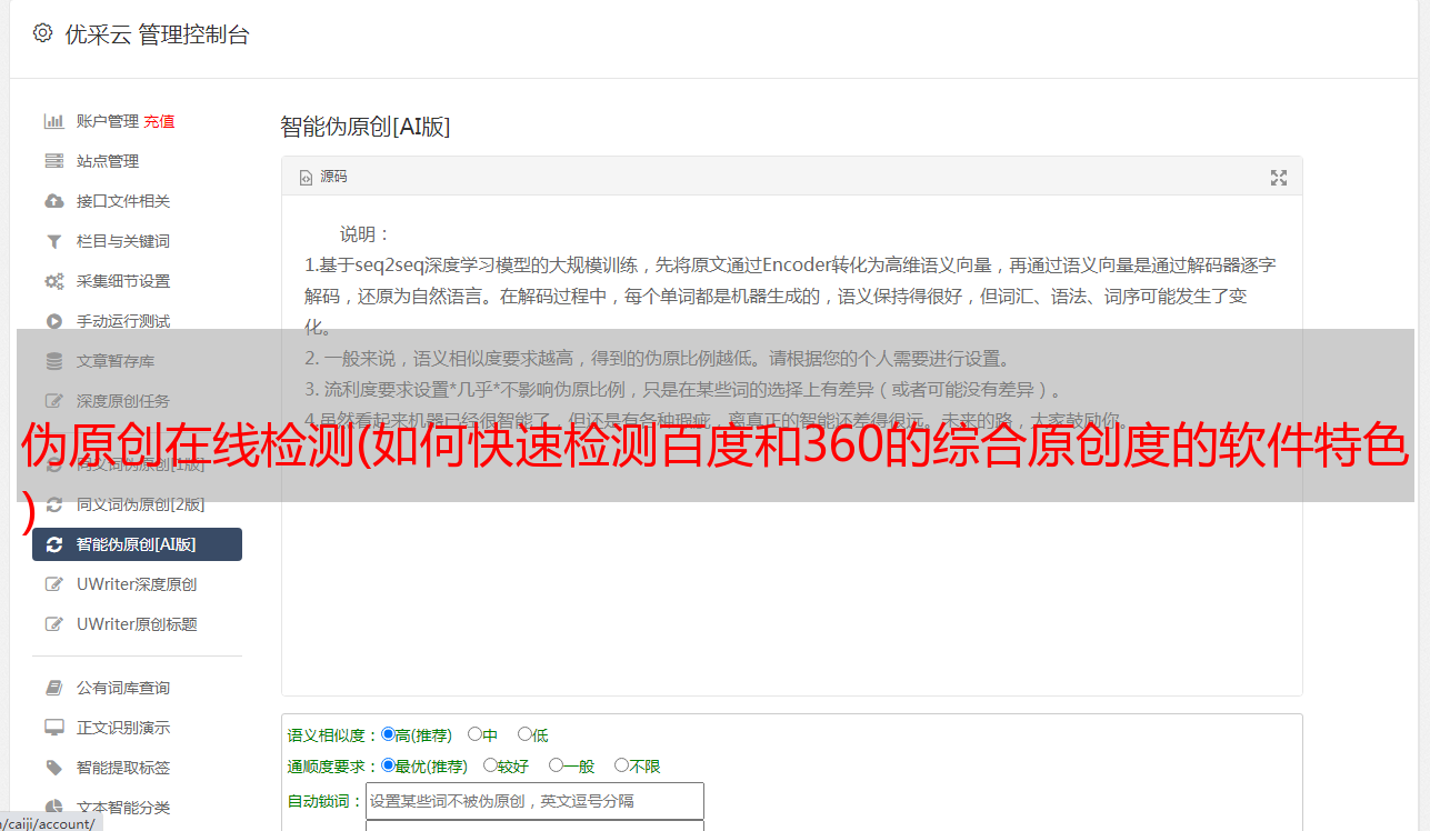 伪原创在线检测(如何快速检测百度和360的综合原创度的软件特色 )