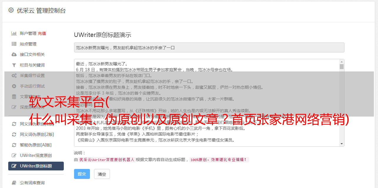 软文采集平台( 什么叫采集、伪原创以及原创文章?首页张家港网络营销)