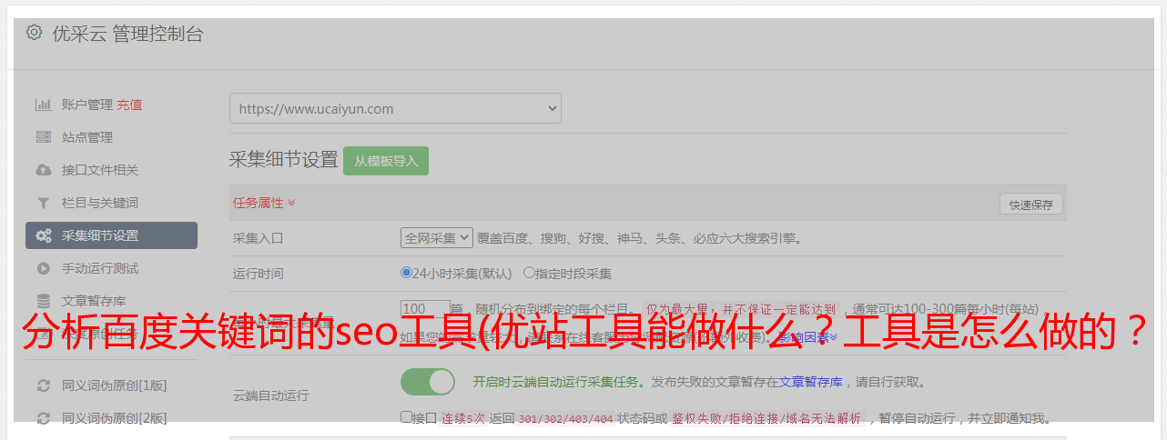 优采云 发布时间: 2021-10-07 01:26分析百度关键词的seo工具(优站工具能做什么?工具是怎么做的?