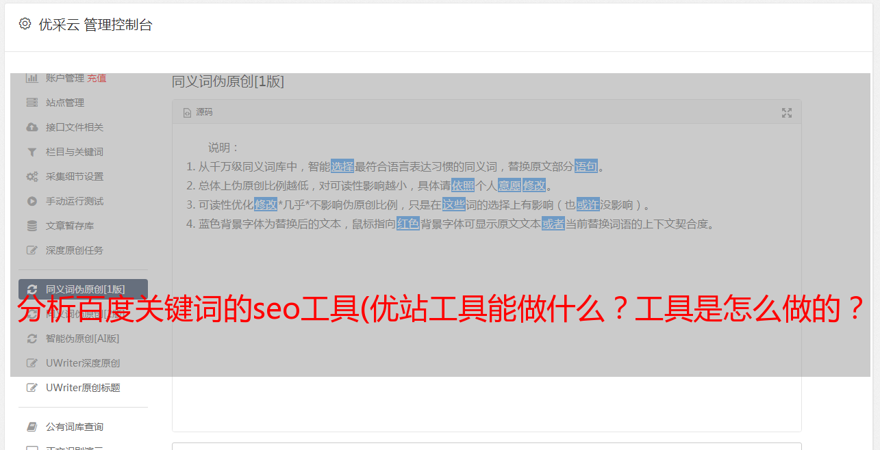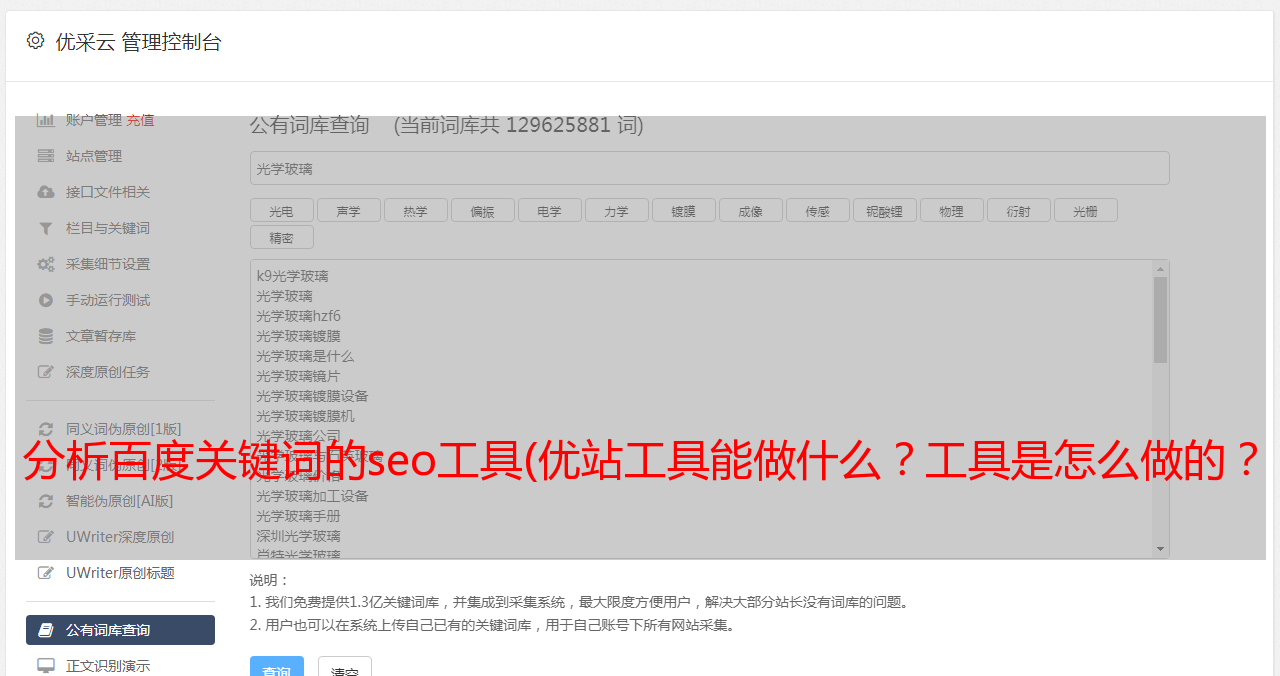 分析百度关键词的seo工具(优站工具能做什么?工具是怎么做的? )
