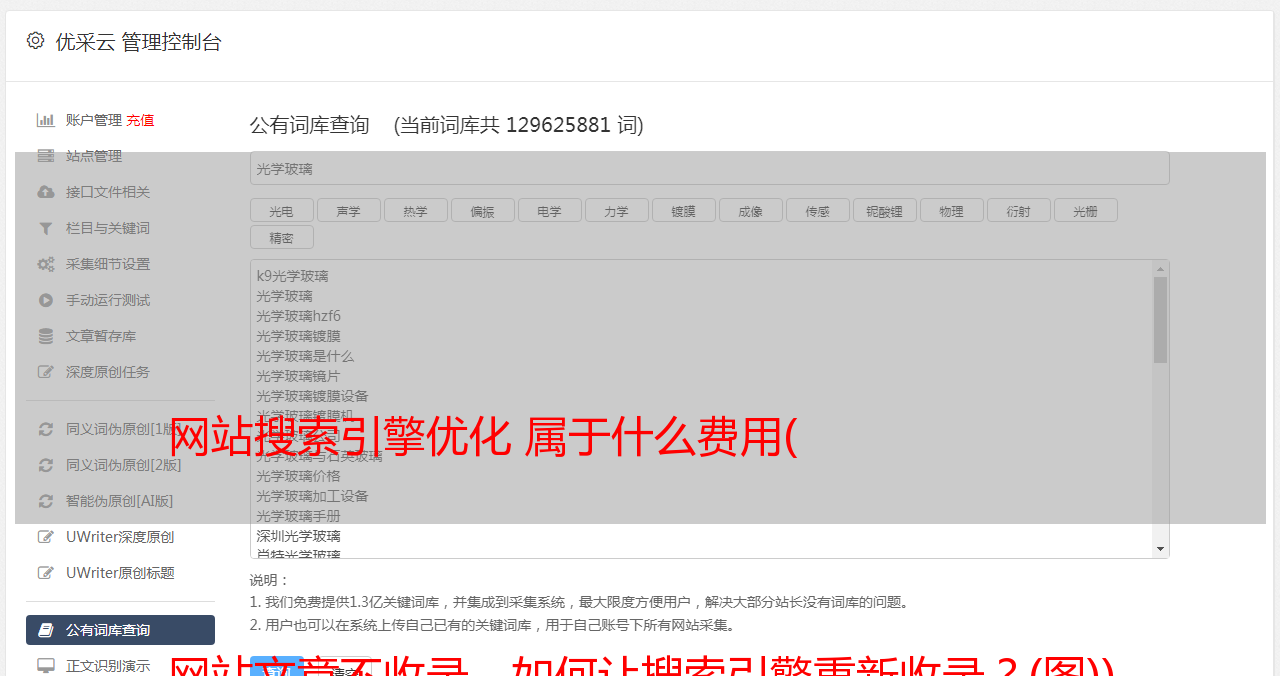 优采云 发布时间: 2021-10-07 04:04网站搜索引擎优化 属于什么费用(