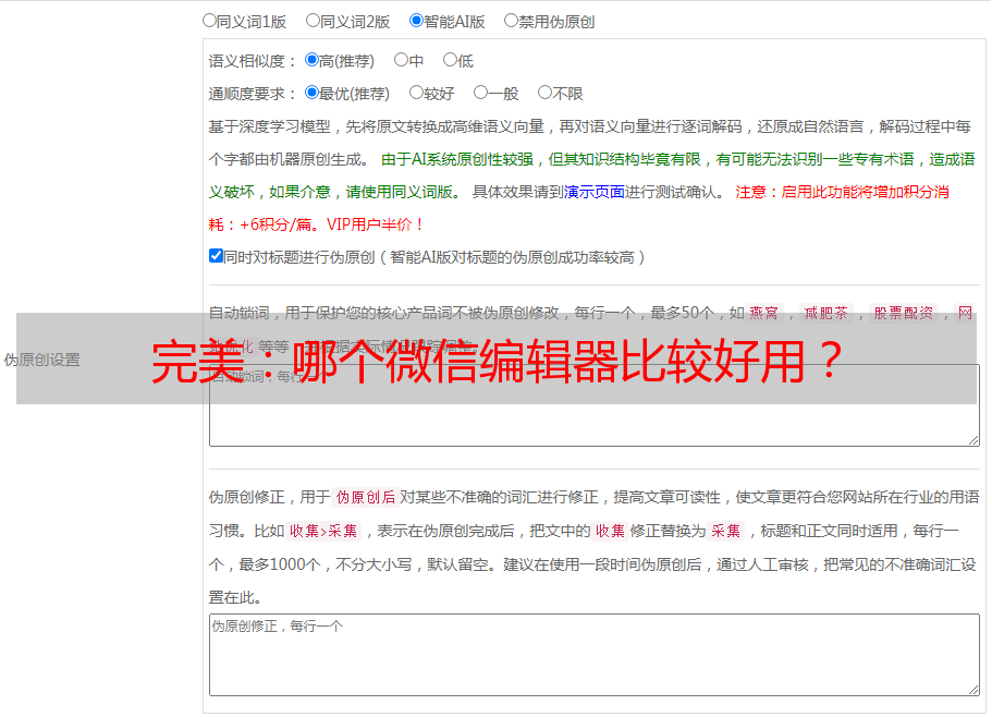 就文本格式编辑而言,这四个编辑器均具有基本的文本编辑功能. 更特别的是135编辑器可以搜索和替换文本,而益邦的错别字检查功能非常强大,其他编辑器也是如此. 设备不具备的功能.