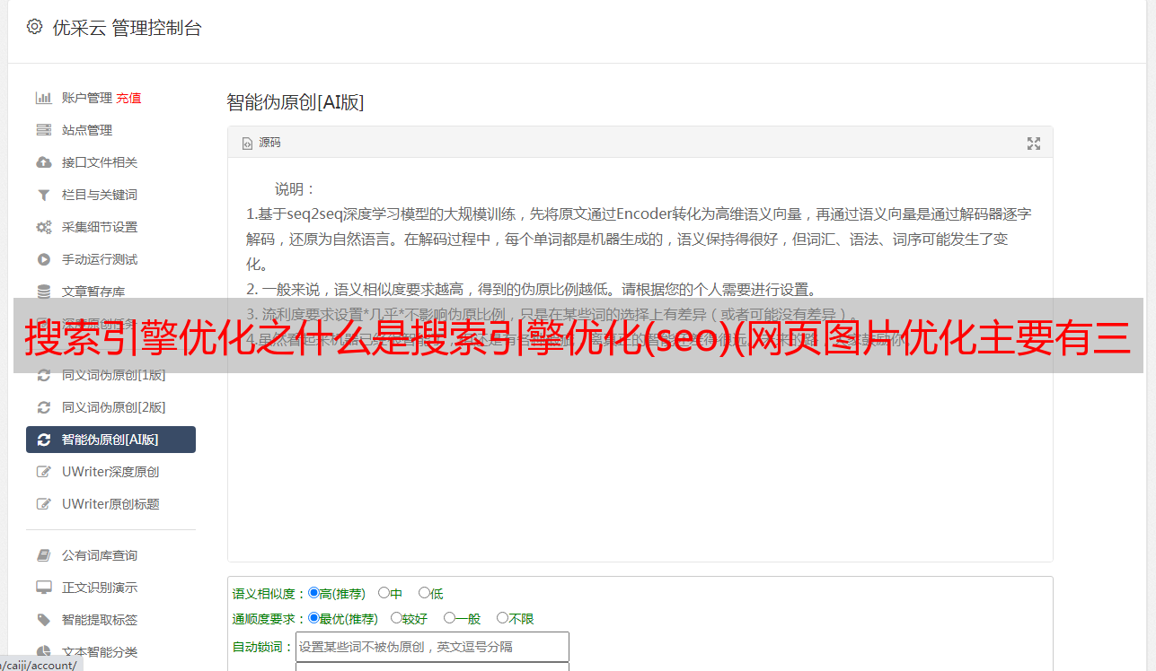 优采云 发布时间: 2021-10-07 05:17搜索引擎优化之什么是搜索引擎优化(seo)(网页图片优化主要有三个点:图片ALT标签设置)