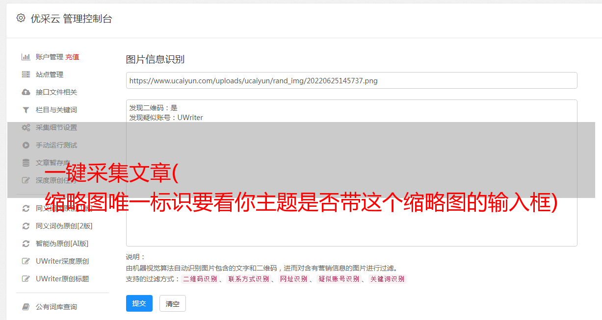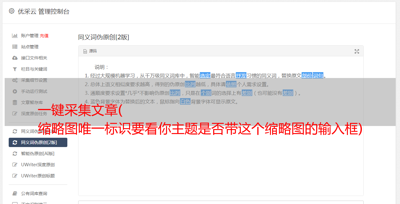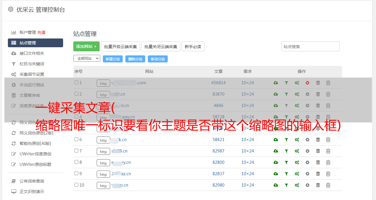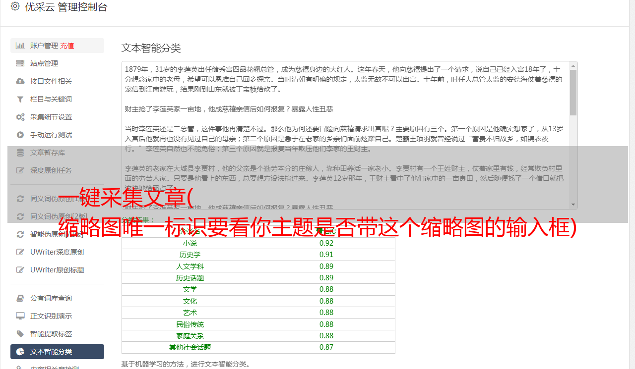 一键采集文章( 缩略图唯一标识要看你主题是否带这个缩略图的输入框)