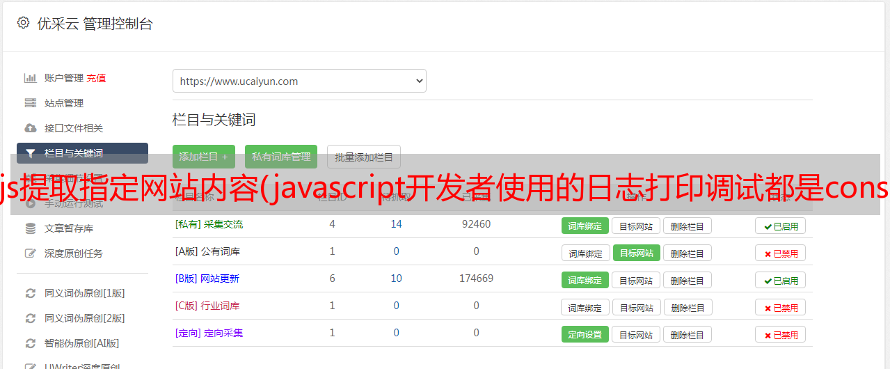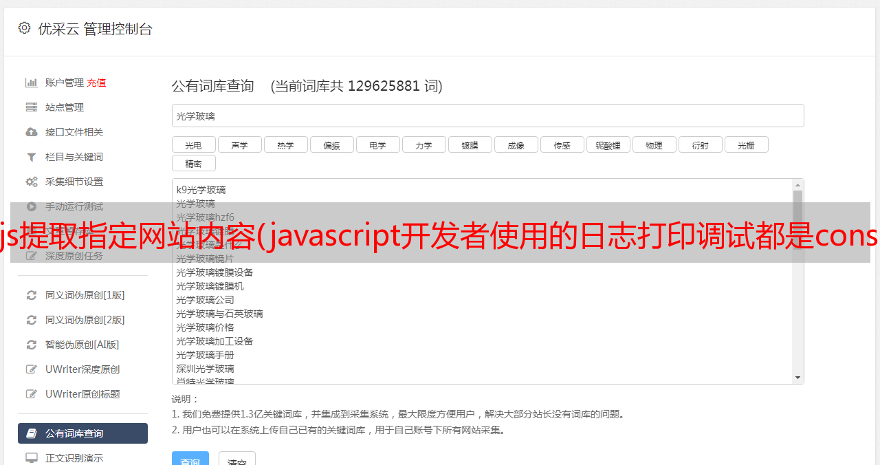 优采云 发布时间: 2021-10-07 09:21js提取指定网站内容(javascript开发者使用的日志打印调试都是console.log)
