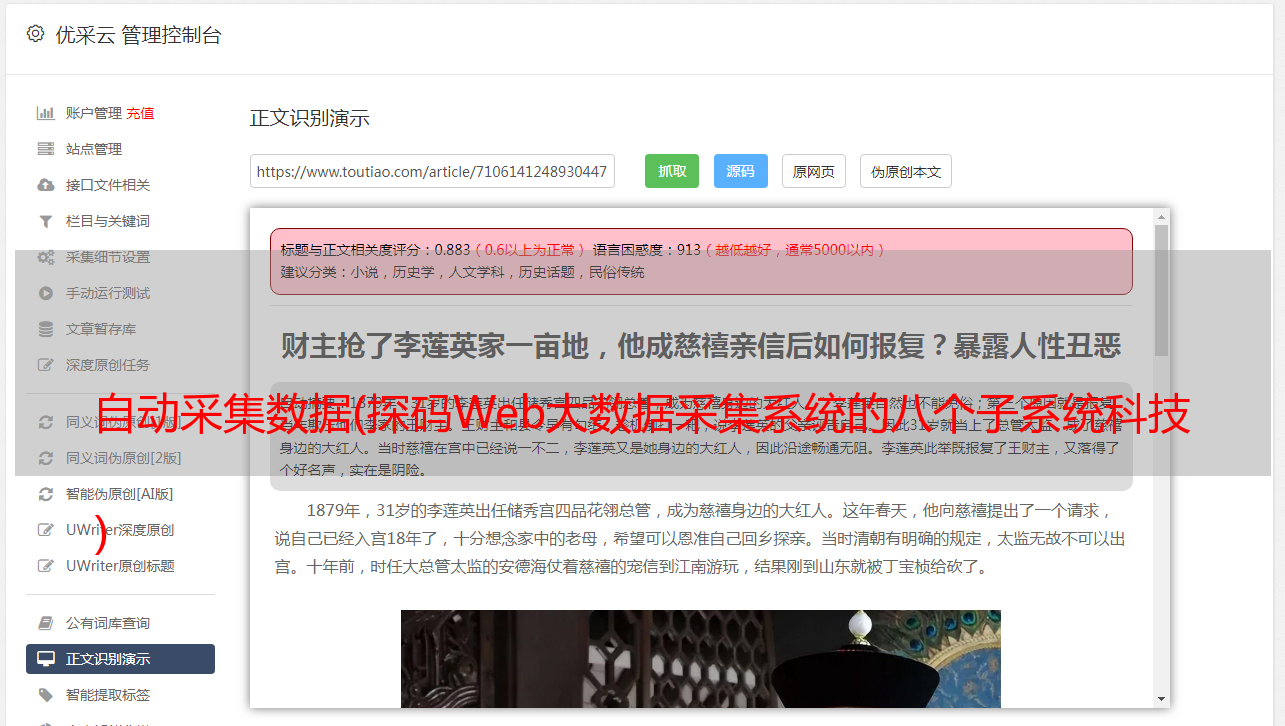 优采云 发布时间: 2021-10-07 16:34自动采集数据(探码Web大数据采集系统的八个子系统科技
