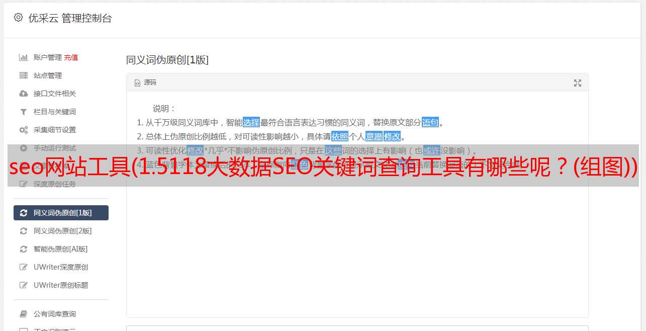 优采云 发布时间: 2021-10-07 17:29seo网站工具(1.5118大数据SEO关键词查询工具有哪些呢?(组图))