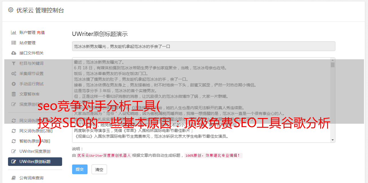 优采云 发布时间: 2021-10-07 18:21seo竞争对手分析工具(