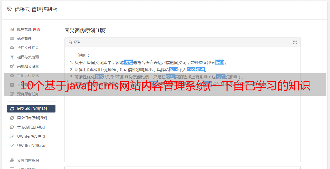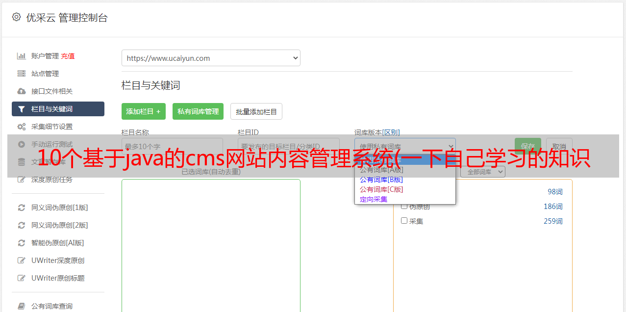 优采云 发布时间: 2021-10-07 21:1010个基于java的cms网站内容管理系统(一下自己学习的知识点以及提高一下编程能力,你值得拥有)