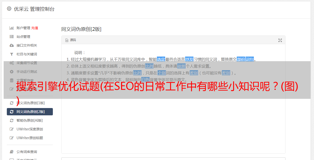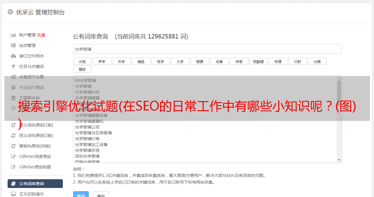 优采云 发布时间: 2021-10-07 21:36搜索引擎优化试题(在SEO的日常工作中有哪些小知识呢?(图)