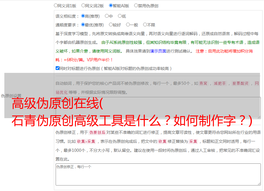 高级伪原创在线( 石青伪原创高级工具是什么?如何制作字?)