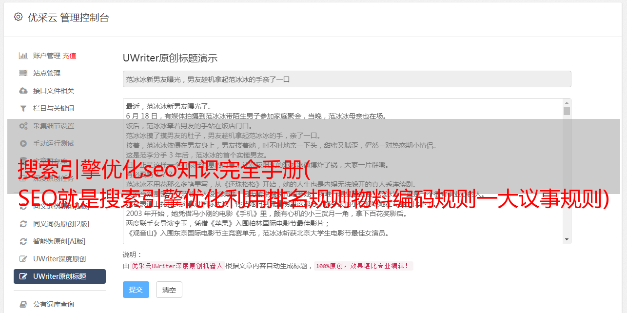 优采云 发布时间: 2021-10-08 01:12搜索引擎优化seo知识完全手册(