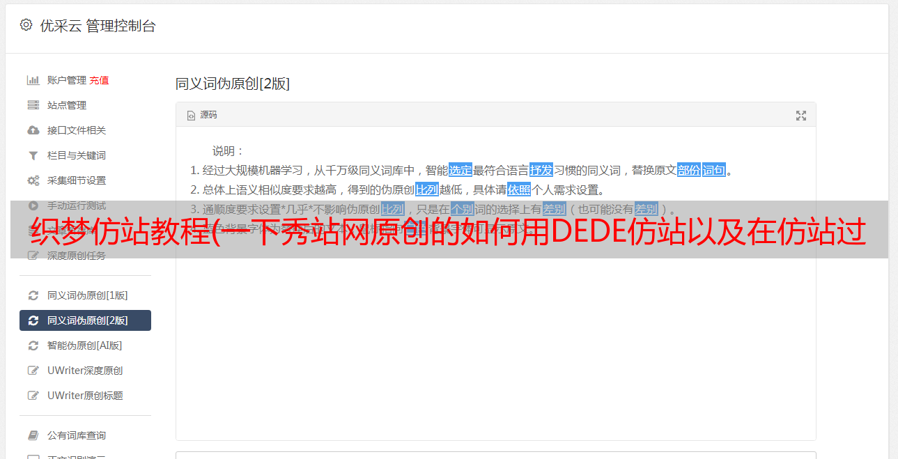 优采云 发布时间: 2021-10-08 01:14织梦仿站教程(一下秀站网原创的如何用DEDE仿站以及在仿站过程中)