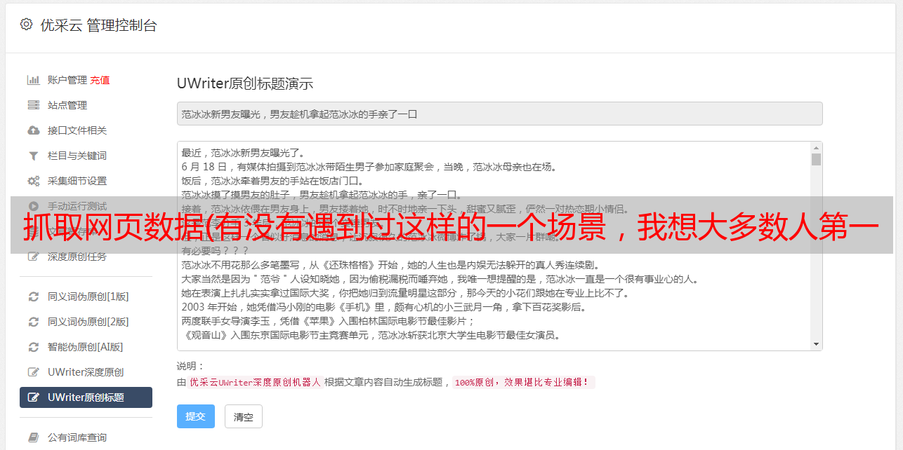 优采云 发布时间: 2021-10-08 01:20抓取网页数据(有没有遇到过这样的一个场景,我想大多数人第一反应就是爬虫)