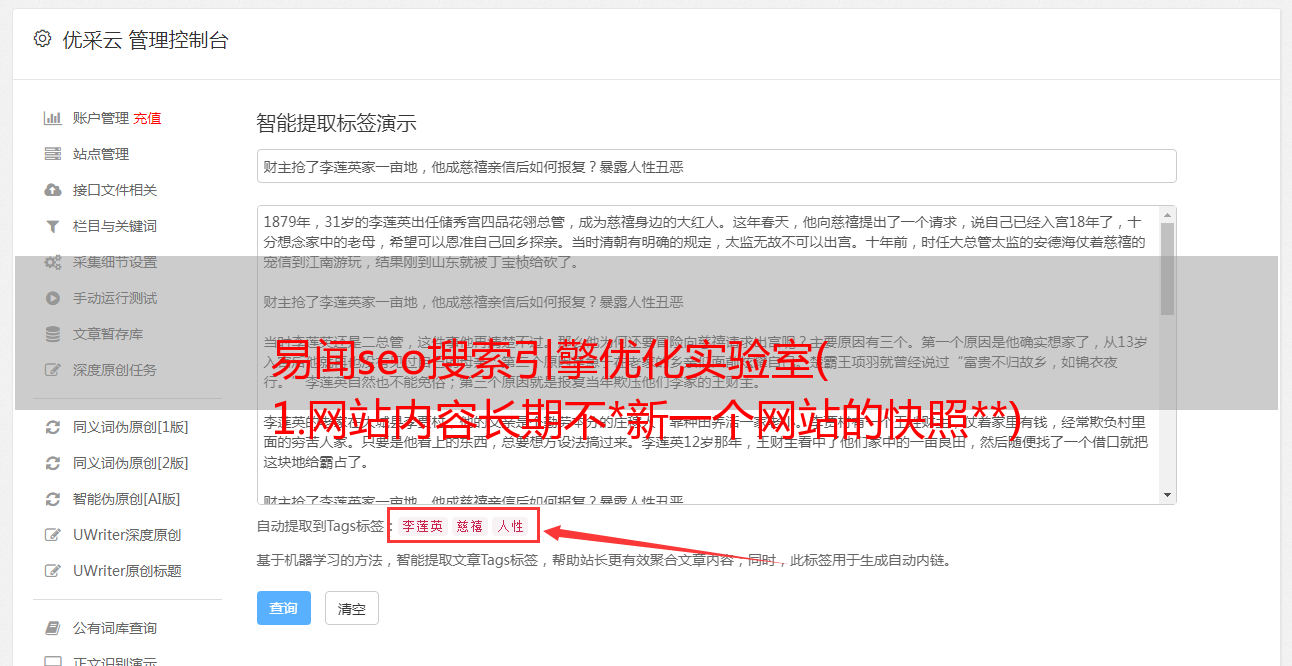 易闻seo搜索引擎优化实验室( 1.网站内容长期不*新一个网站的快照**)