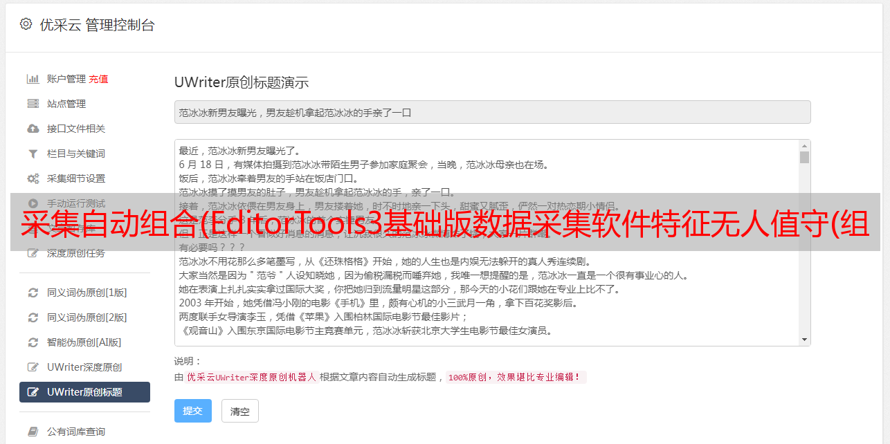 优采云 发布时间: 2021-10-08 07:15采集自动组合(EditorTools3基础版数据采集软件特征无人值守(组图))