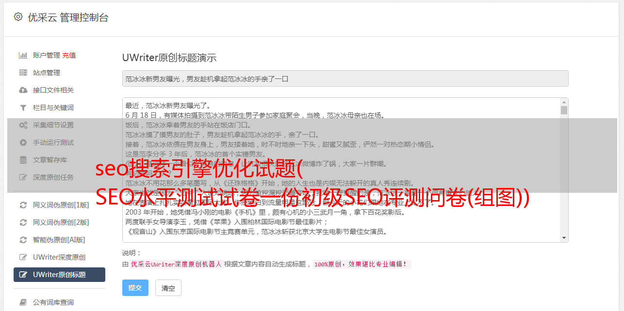 优采云 发布时间: 2021-10-08 08:29seo搜索引擎优化试题(