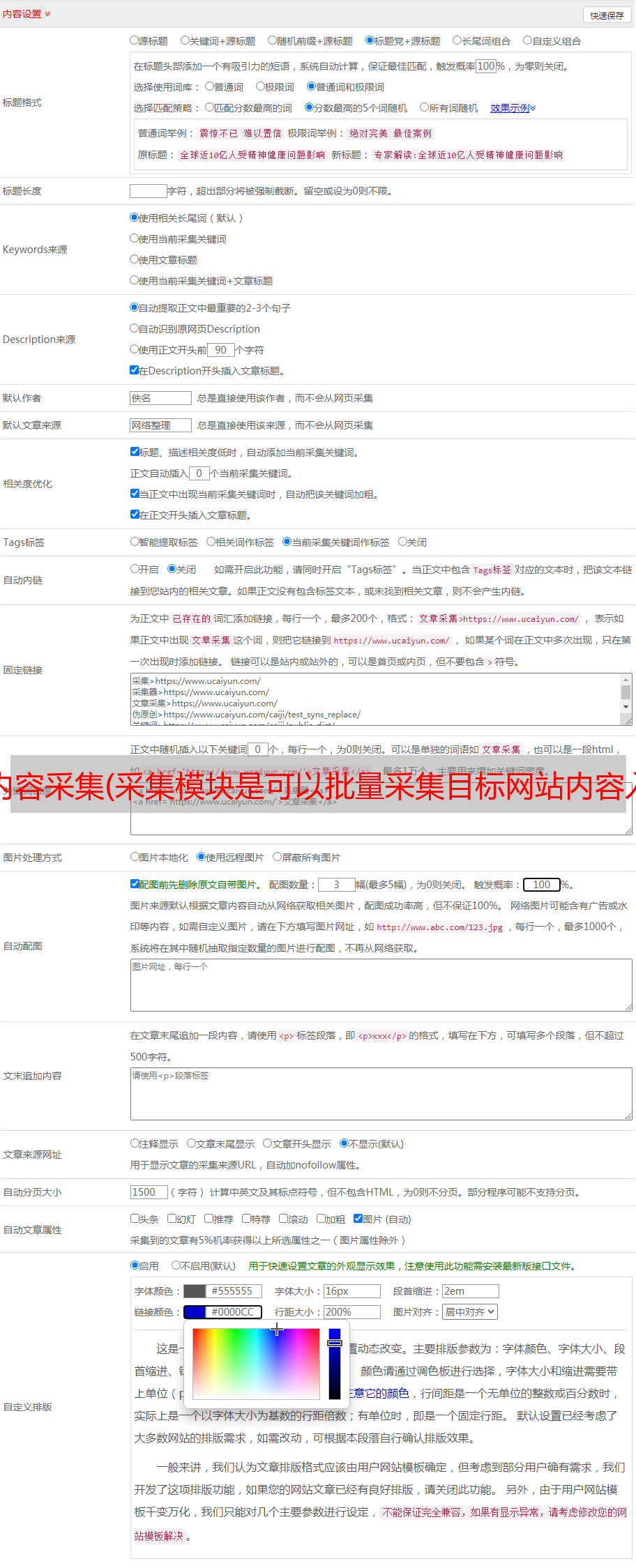 采集模块可以批量采集目标网站内容存储