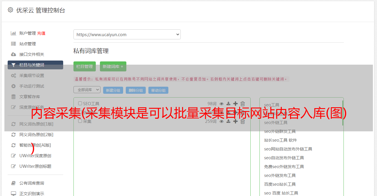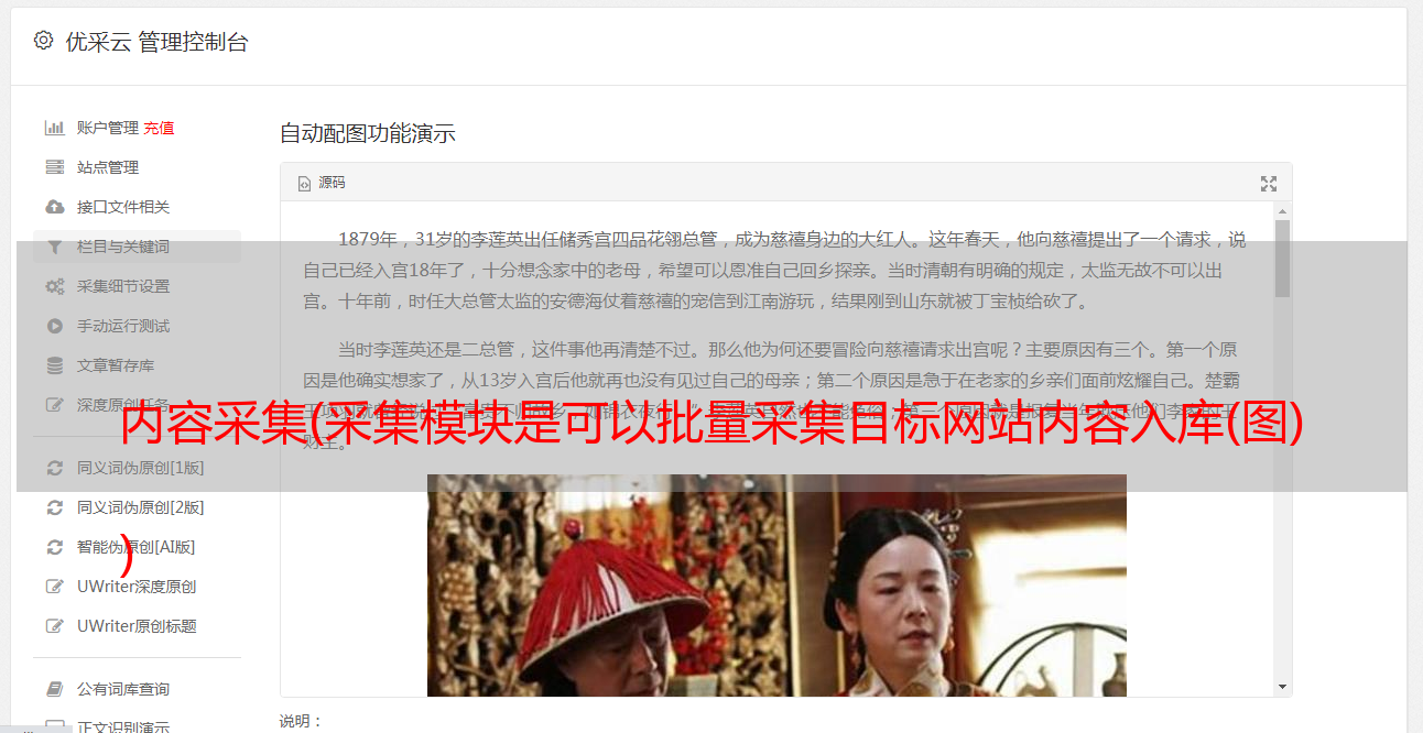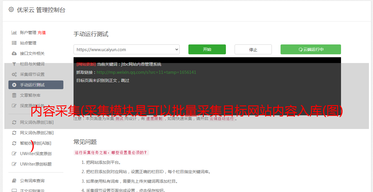 优采云 发布时间: 2021-10-08 09:13内容采集(采集模块是可以批量采集目标网站内容入库(图)