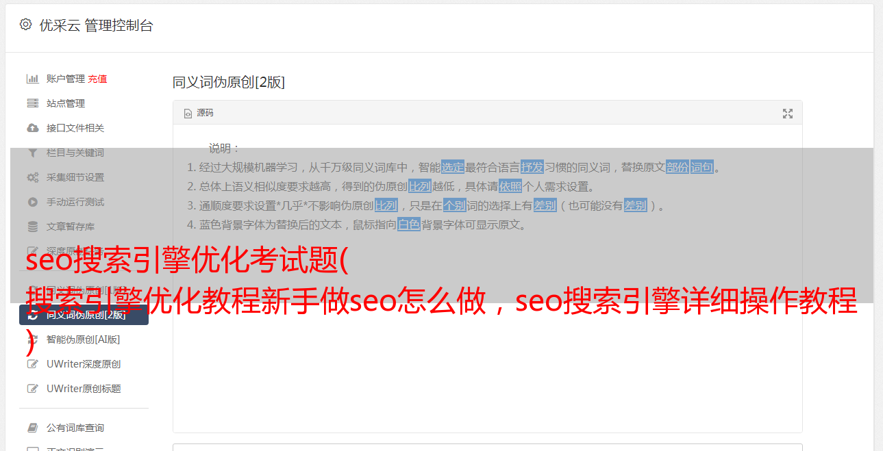 优采云 发布时间: 2021-10-08 09:22seo搜索引擎优化考试题(