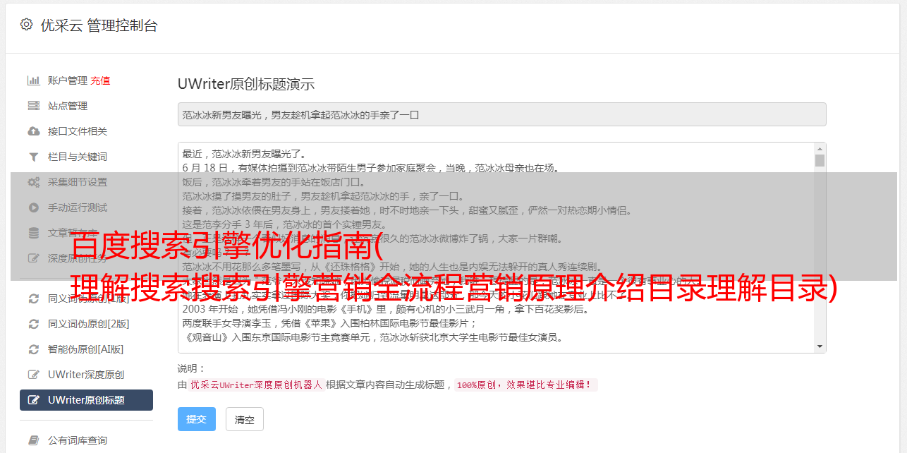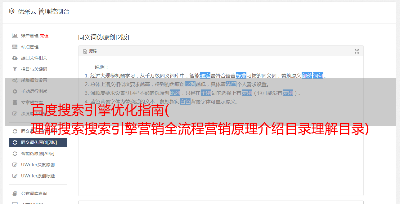 优采云 发布时间: 2021-10-08 10:04百度搜索引擎优化指南(