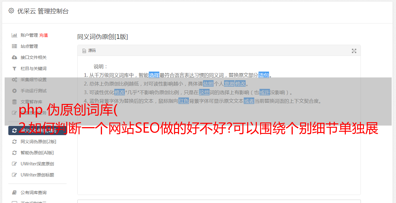 php 伪原创词库( 2.如何判断一个网站SEO做的好不好?可以围绕个别细节单独展开错误回答)