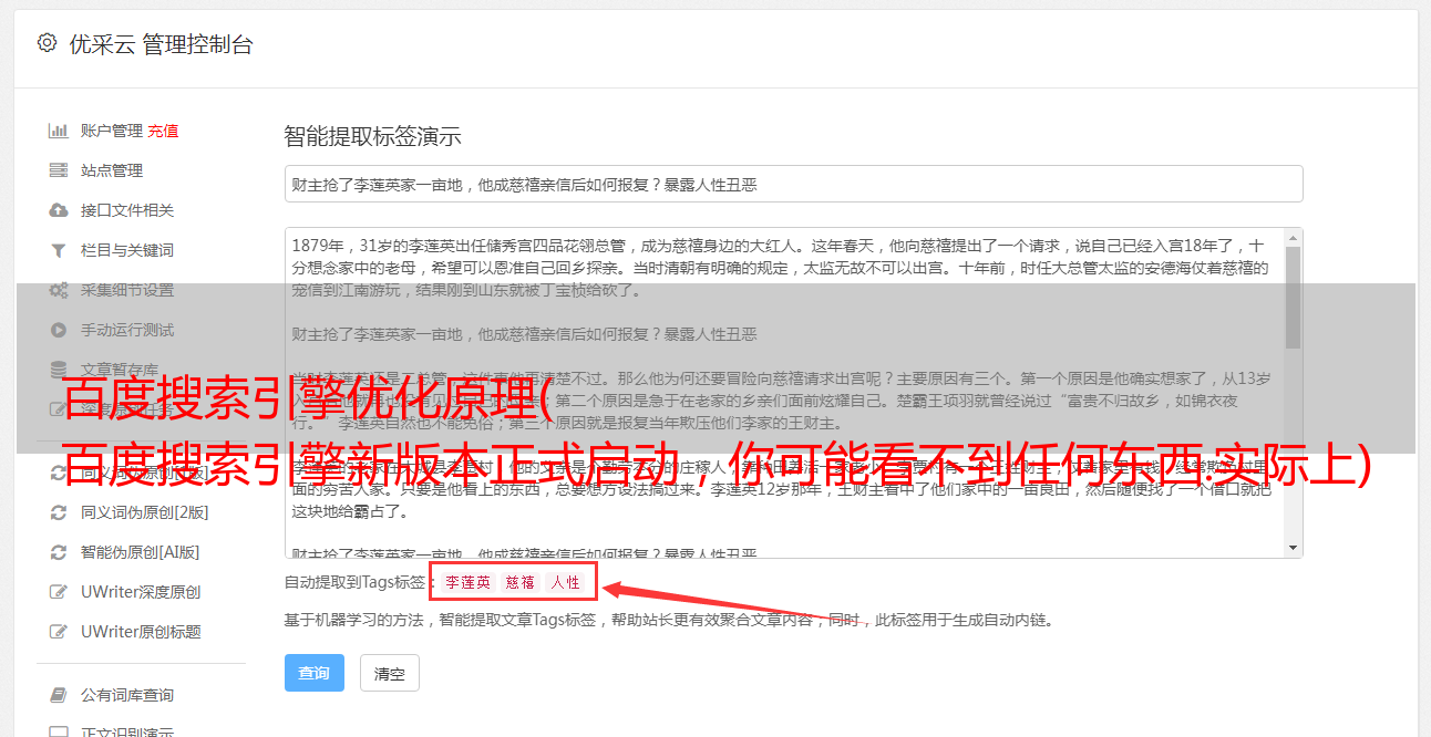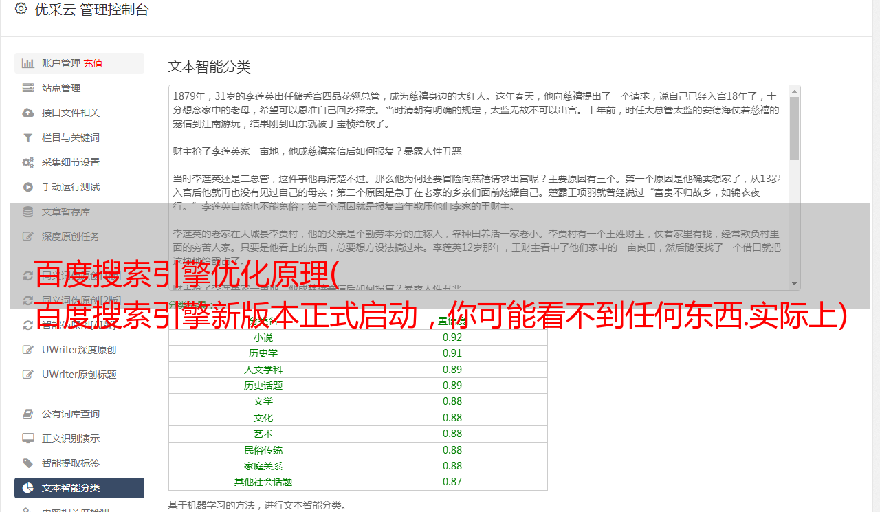 用户评分:分类后,不代表搜索引擎一定会收录你的文章。主要取决于用户的评分,用户的点击率和停留时间决定了这篇文章的价值。