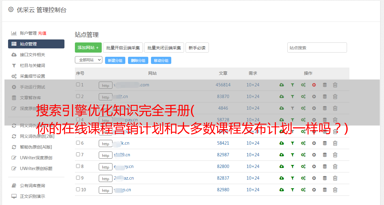 优采云 发布时间: 2021-10-08 19:17搜索引擎优化知识完全手册(