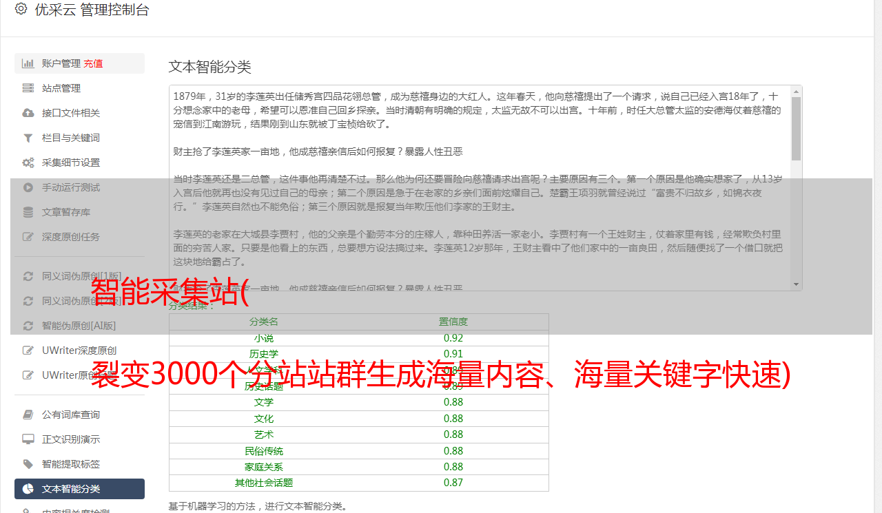 智能采集站( 裂变3000个分站站群生成海量内容、海量关键字快速)