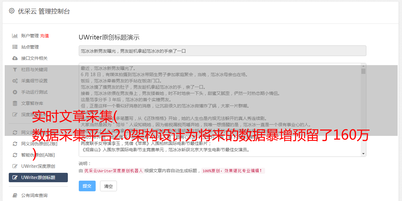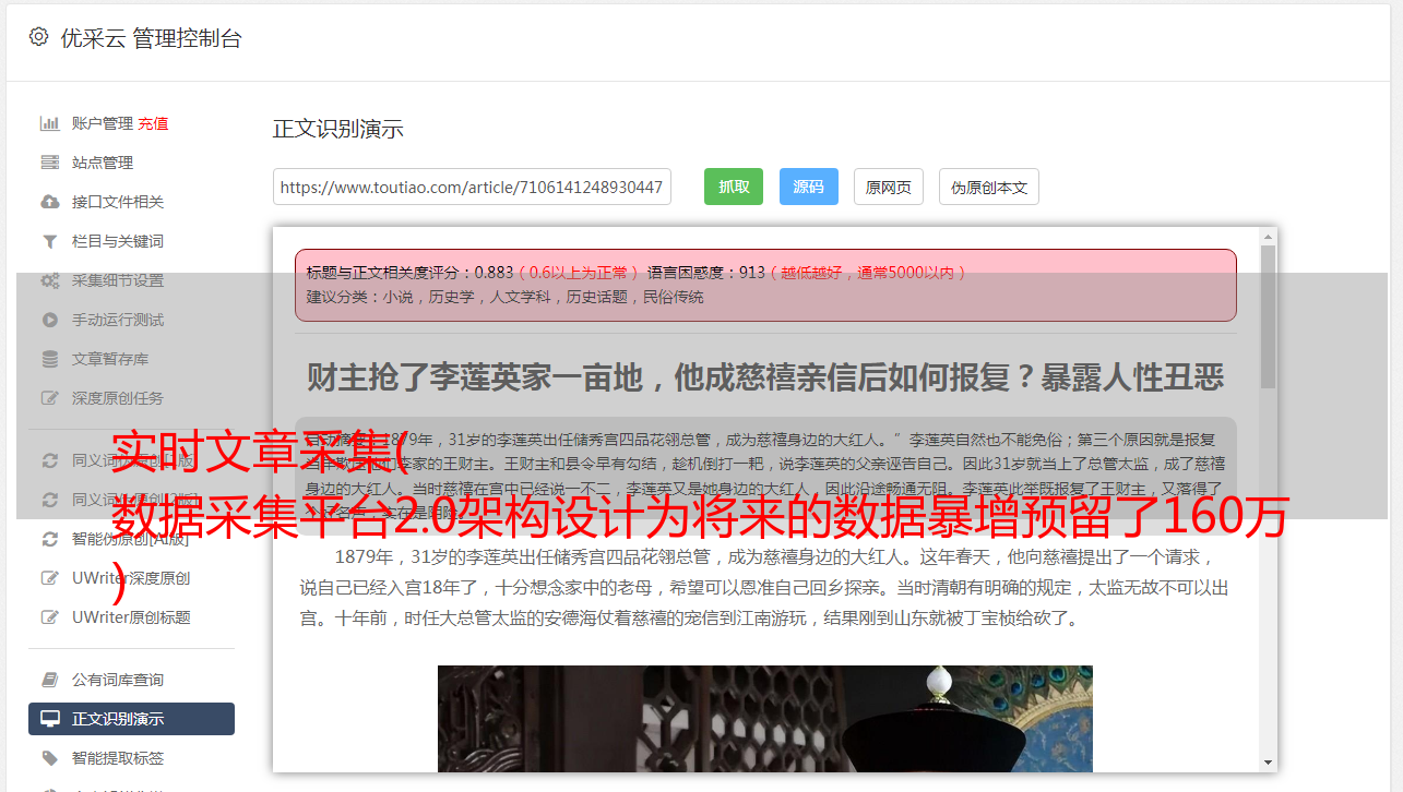 实时文章采集( 数据采集平台2.0架构设计为将来的数据暴增预留了160万 )