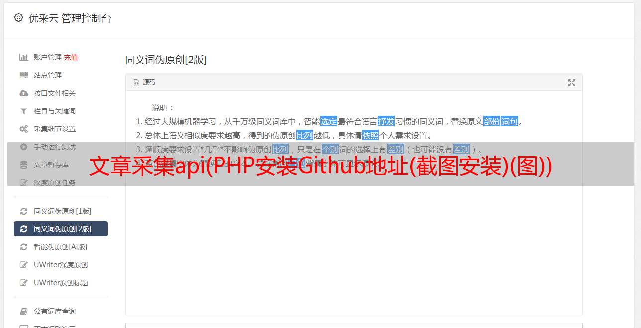 优采云 发布时间: 2021-10-09 03:24文章采集api(PHP安装Github地址(截图安装)(图))