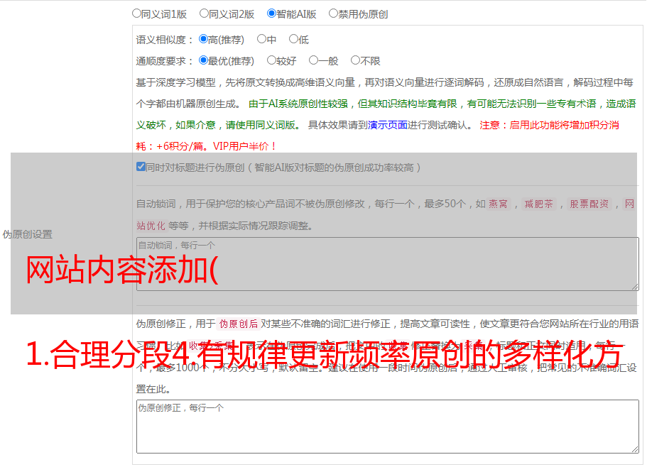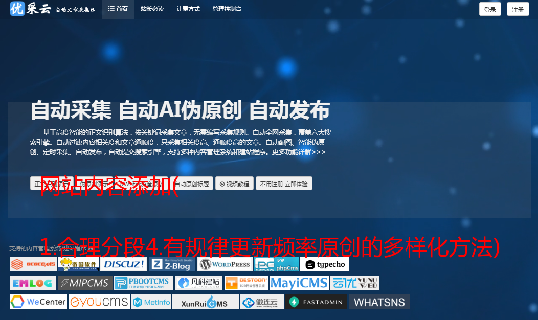 网站内容添加( 1.合理分段4.有规律更新频率原创的多样化方法)