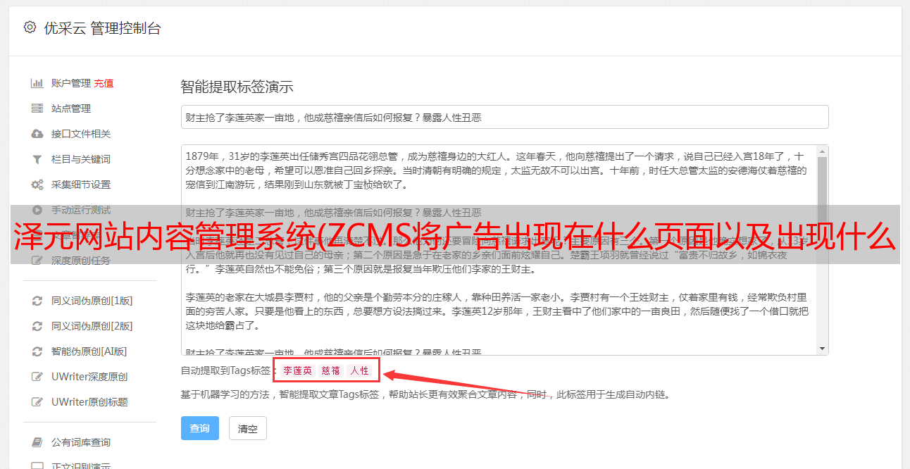 优采云 发布时间: 2021-10-09 06:17泽元网站内容管理系统(ZCMS将广告出现在什么页面以及出现什么位置广告版位