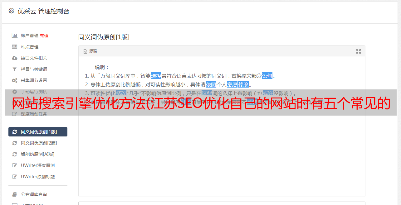 优采云 发布时间: 2021-10-09 08:21网站搜索引擎优化方法(江苏SEO优化自己的网站时有五个常见的几种错误)