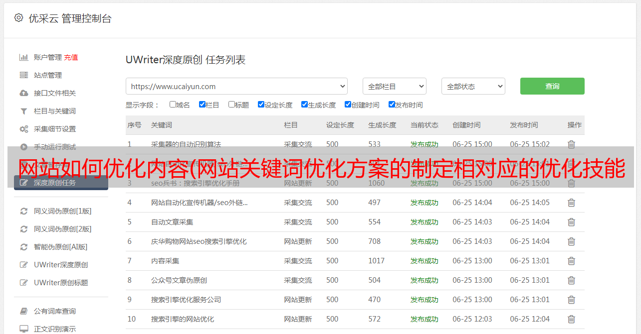优采云 发布时间: 2021-10-09 15:17网站如何优化内容(网站关键词优化方案的制定相对应的优化技能!!)