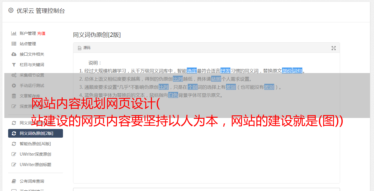 优采云 发布时间: 2021-10-09 18:13网站内容规划网页设计(