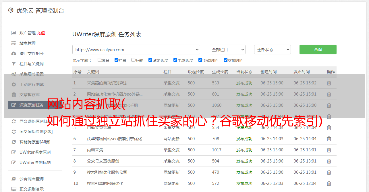优采云 发布时间: 2021-10-09 19:28网站内容抓取(