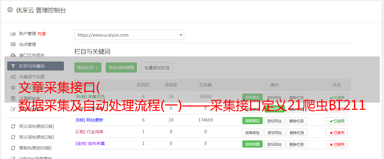 优采云 发布时间: 2021-10-09 21:10文章采集接口(