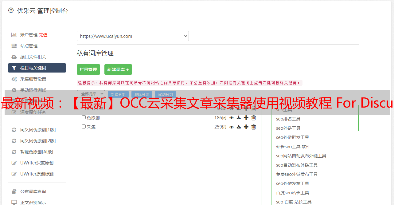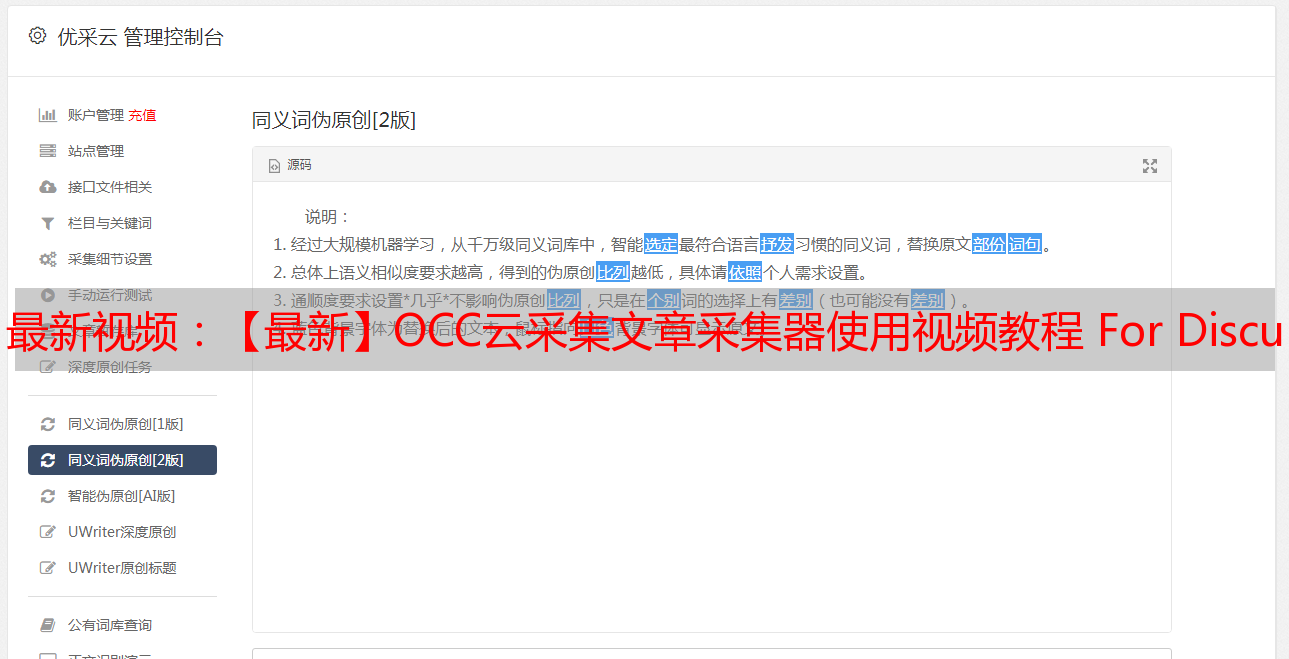 最新视频:【最新】OCC云采集文章采集器使用视频教程 For Discuz!X 2