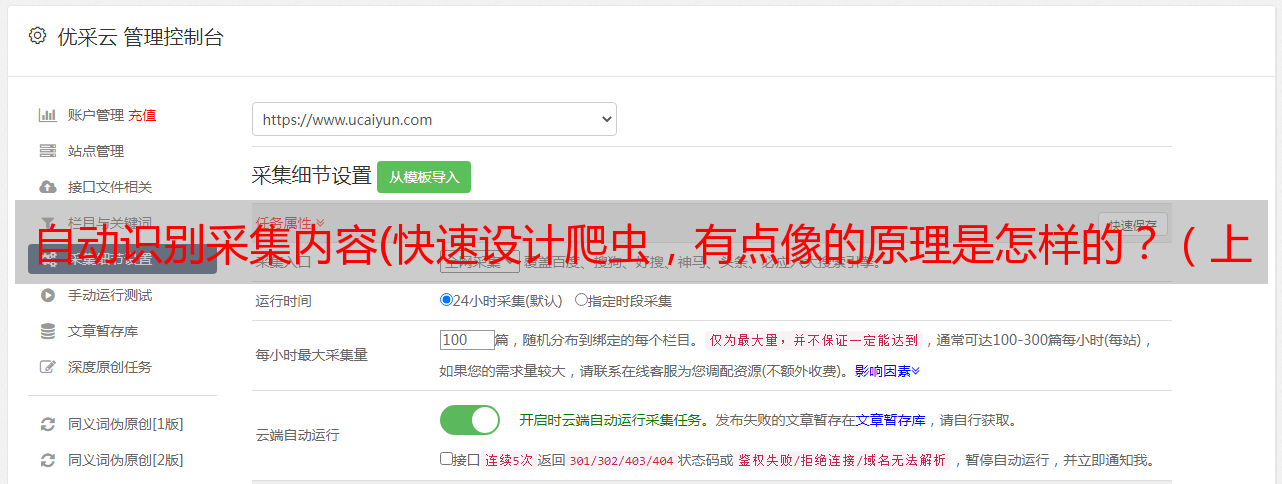 优采云 发布时间: 2021-10-10 02:23自动识别采集内容(快速设计爬虫,有点像的原理是怎样的?(上))