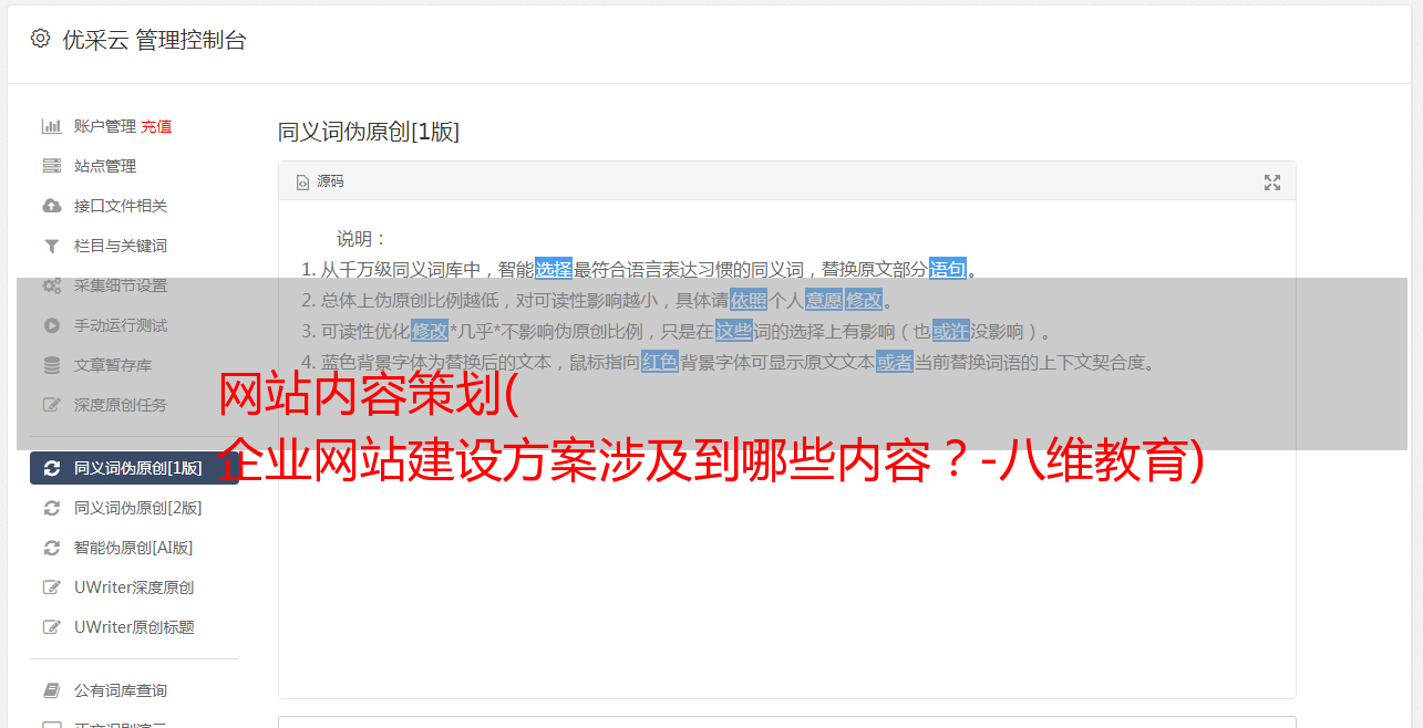优采云 发布时间: 2021-10-10 02:25网站内容策划(