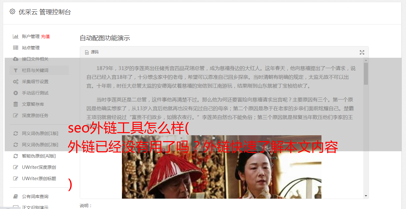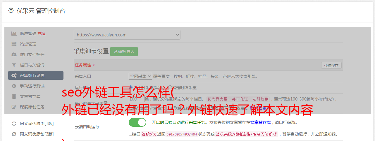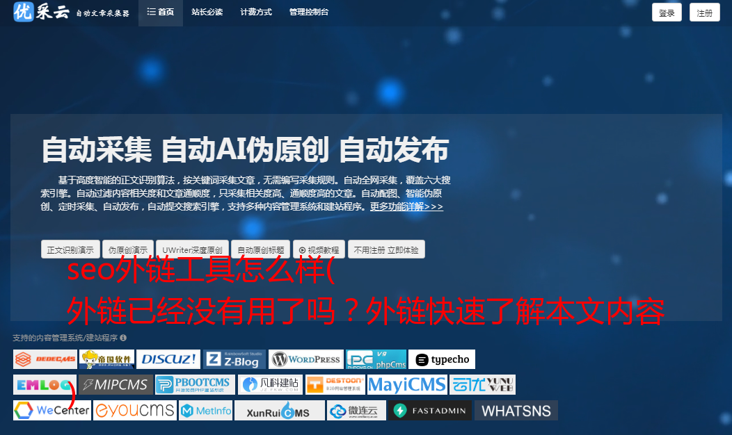 优采云 发布时间: 2021-10-10 03:10seo外链工具怎么样(