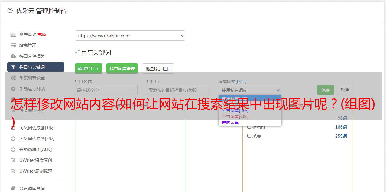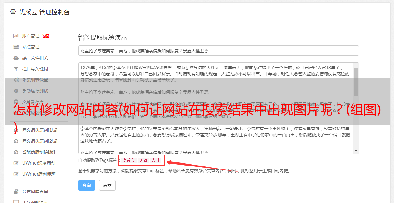 优采云 发布时间: 2021-10-10 05:24怎样修改网站内容(如何让网站在搜索结果中出现图片呢?(组图)