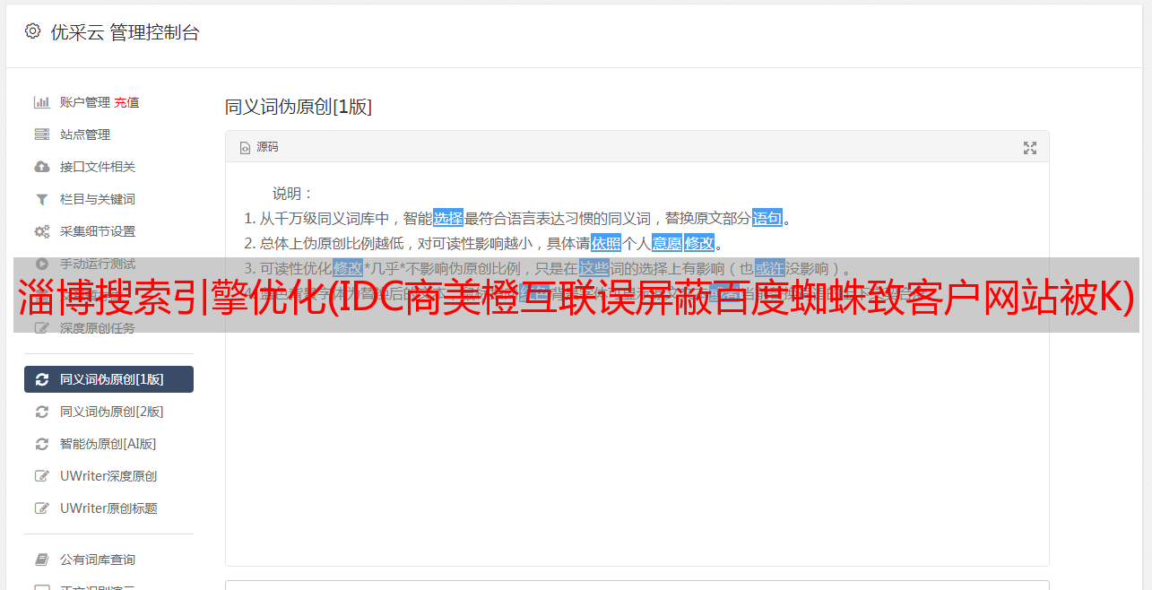 优采云 发布时间: 2021-10-10 06:04淄博搜索引擎优化(IDC商美橙互联误屏蔽百度蜘蛛致客户网站被K)