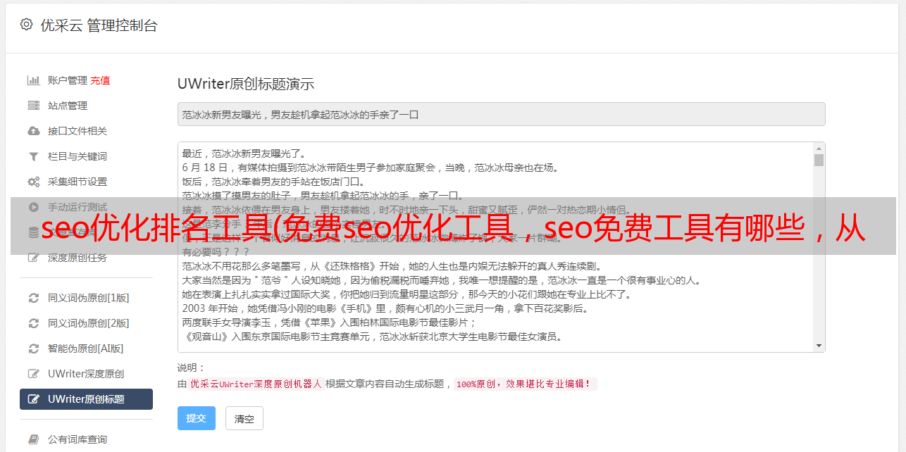 优采云 发布时间: 2021-10-10 08:28seo优化排名工具(免费seo优化工具,seo免费工具有哪些,从以下几点详细介绍)