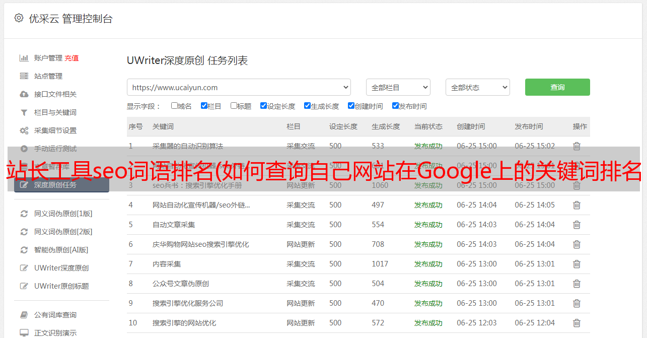 优采云 发布时间: 2021-10-10 09:00站长工具seo词语排名(如何查询自己网站在Google上的关键词排名?(图))