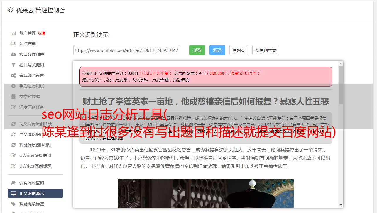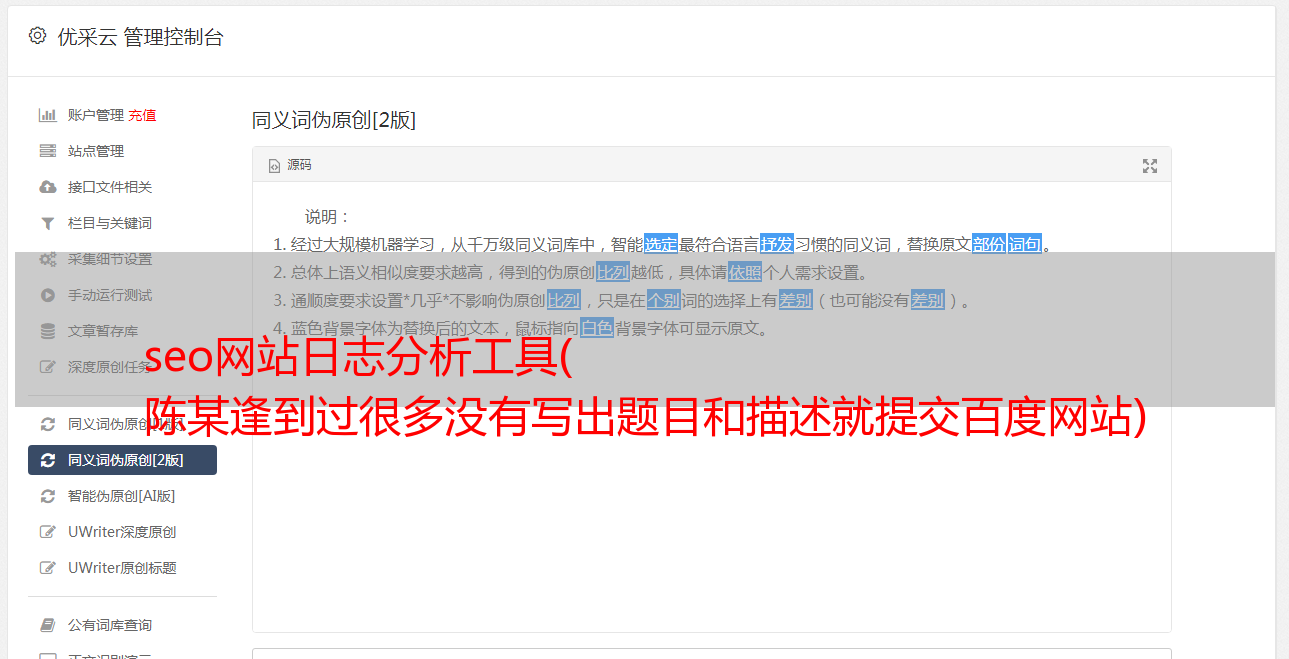 seo网站日志分析工具( 陈某逢到过很多没有写出题目和描述就提交百度网站)