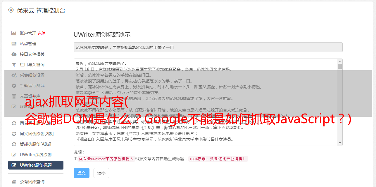 优采云 发布时间: 2021-10-10 23:02ajax抓取网页内容(