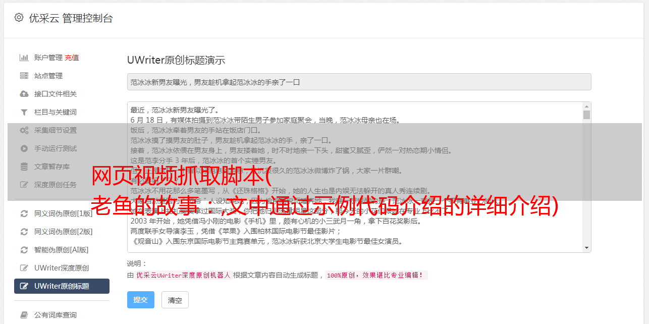 优采云 发布时间: 2021-10-11 02:25网页视频抓取脚本(